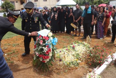 Kapolres Tanah Karo Pimpin Upacara Pemakaman Kompol (Purn) Narno di Taman Makam Bahagia Kabanjahe